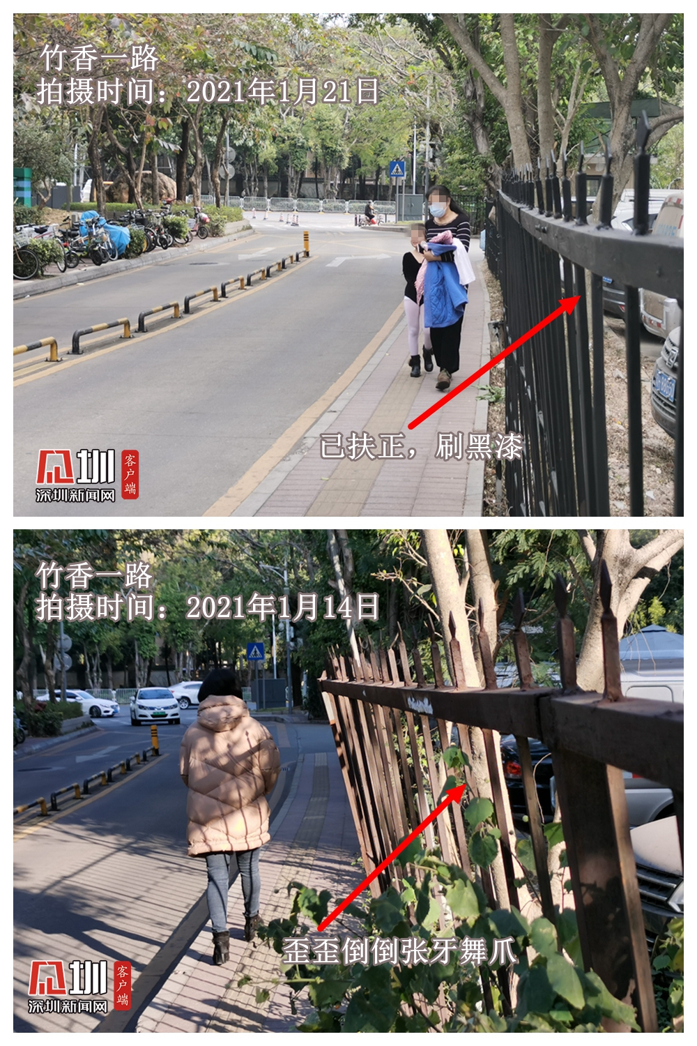 見圳客戶端·深圳新聞網(wǎng)2021年1月21日訊(記者 陳致遠(yuǎn))窄窄的人行道,搖搖欲墜張牙舞爪的圍欄——第16期深網(wǎng)記“路”儀報(bào)道的竹香一路,有了最新進(jìn)展。此前因找不到代建單位而無法移交主管部門管養(yǎng)的這條路,在記者報(bào)道后不到一周的時(shí)間,歪歪倒倒的圍欄扶正了,人行道也即將拓寬。